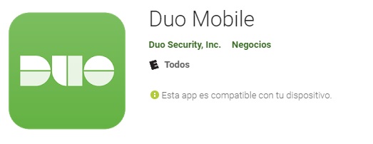 Por un lado, esta Duo Mobile. Desarrollado por Duo Security Inc, una empresa actualmente adquirida por Cisco.